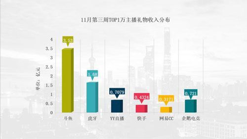 正因为坐拥如此优秀且领先的主播们,斗鱼才能在直播领域一直保持领先。同时也为所有用户提供高质量、多角度、有趣味的直播内容。根据小葫芦数据在2019年11月28日发布的直播周报数据,自11月21日至周报发布,礼物收入前十全部被斗鱼包揽,爆发式的增长源自于11月21日斗鱼平台十大巅峰和星耀主播诞生的活动赛事结果。这一周内斗鱼的礼物总价值也达到了3.53亿元,远超第二名虎牙的1.68亿元。头部主播的吸金能力能大大提高斗鱼经营活动产生的现金流净额。