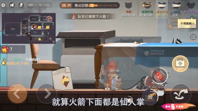 但是只需要一个角色,海盗杰瑞(咚的音效),只要炸了火箭,就算无敌起来捉人绑人,修火箭的时候无敌时间就差不多了。绑人的话那是很难滴,但是也不能说海盗完克他,还得在队友有输出的基础上,面对“黑鼠”只要一个海盗一个奶酪位,其他随便选基本上就能稳赢了。