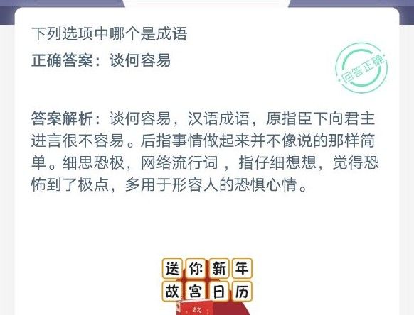 蚂蚁庄园今日问题中需要在细思极恐和谈何容易两者中选择出真正的成语,这也是小编今天要分享给大家的,下面会带来详细的攻略,各位玩家不懂答案是什么的可以参考攻略来了解,成语的含义下面也会有介绍。