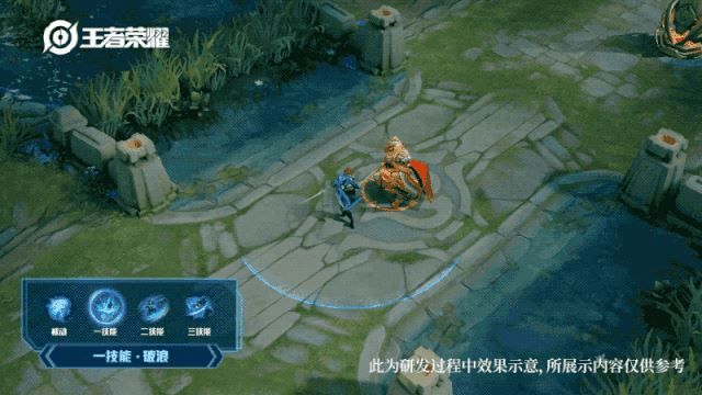 技能简介:澜用魔道之力覆盖全身进入“下潜”状态,增加大量移速。下潜状态下再次使用一技能,澜会冲出水面完成破浪的一击,造成伤害并附带减速效果。