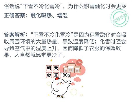 蚂蚁庄园俗话说下雪不冷化雪冷 蚂蚁庄园今日答案下雪不冷化雪冷
