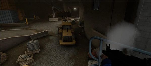 加好子弹,有一把noobgun,右手又是双人开门机关,打开之后会有一波敌人横拉出来,里面有第二个重甲兵。可以提前扔火,AK加AUG的架点处理这个重甲兵比较容易,如果只用手枪就需要用闪光把他拖在火里了。