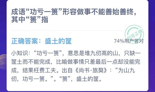 成语功亏一篑形容做事不能善始善终其中篑指?蚂蚁庄园12月5日答案