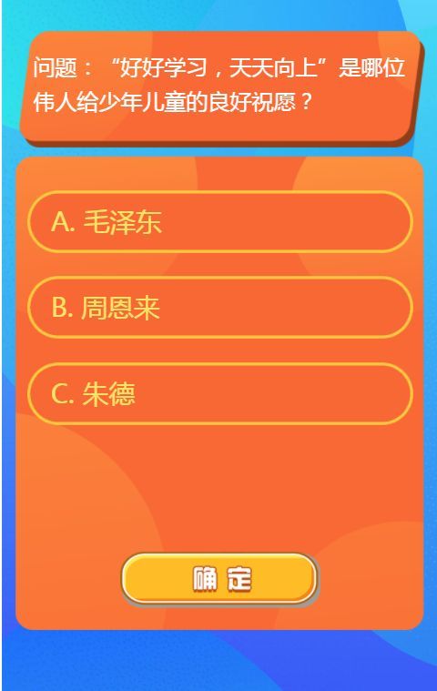问题1:“好好学习,天天向上”是哪位伟人给少年儿童的良好祝愿?