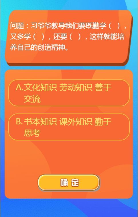 问题2:习爷爷教导我们要既勤学()又多学(),还要(),这样就能培养自己的创造精神。