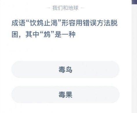 3、成语饮鸩止渴形容用错误方法脱困,其中鸩是一种 ?