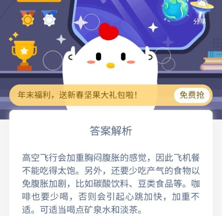 蚂蚁庄园乘坐飞机哪种食物少吃?坐飞机会有很多食物需要大家避免,淡茶和豆类食品哪一个要尽量少食用?大家面对这个问题,还有很多不理解的地方,本站小编不仅会带来正确答案,还会将具体原因分享在下方。