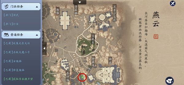 如上图所示的就是八奇珍匣锦鲤任务中要求玩家寻找的宝物的大致位置,参考地图前往附近搜寻即可。