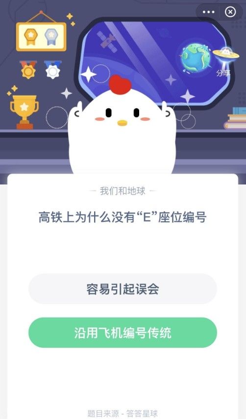 蚂蚁庄园高铁上为什么没有e座编号12.30答案
