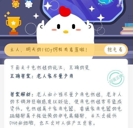 蚂蚁庄园冬天使用电热毯的正确方法是