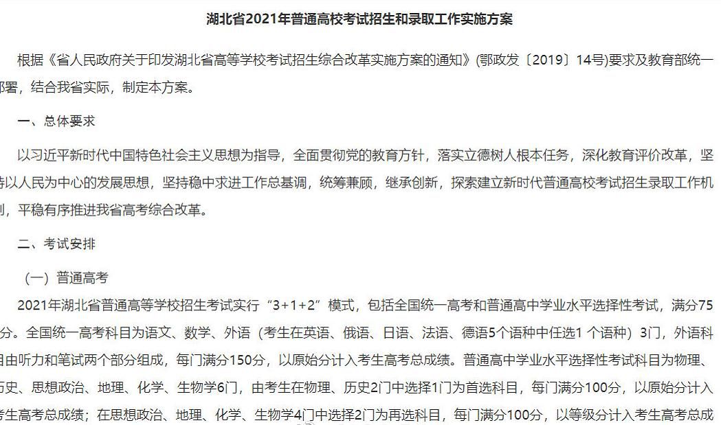2021湖北普通高考报名入口:湖北省教育考试院官网