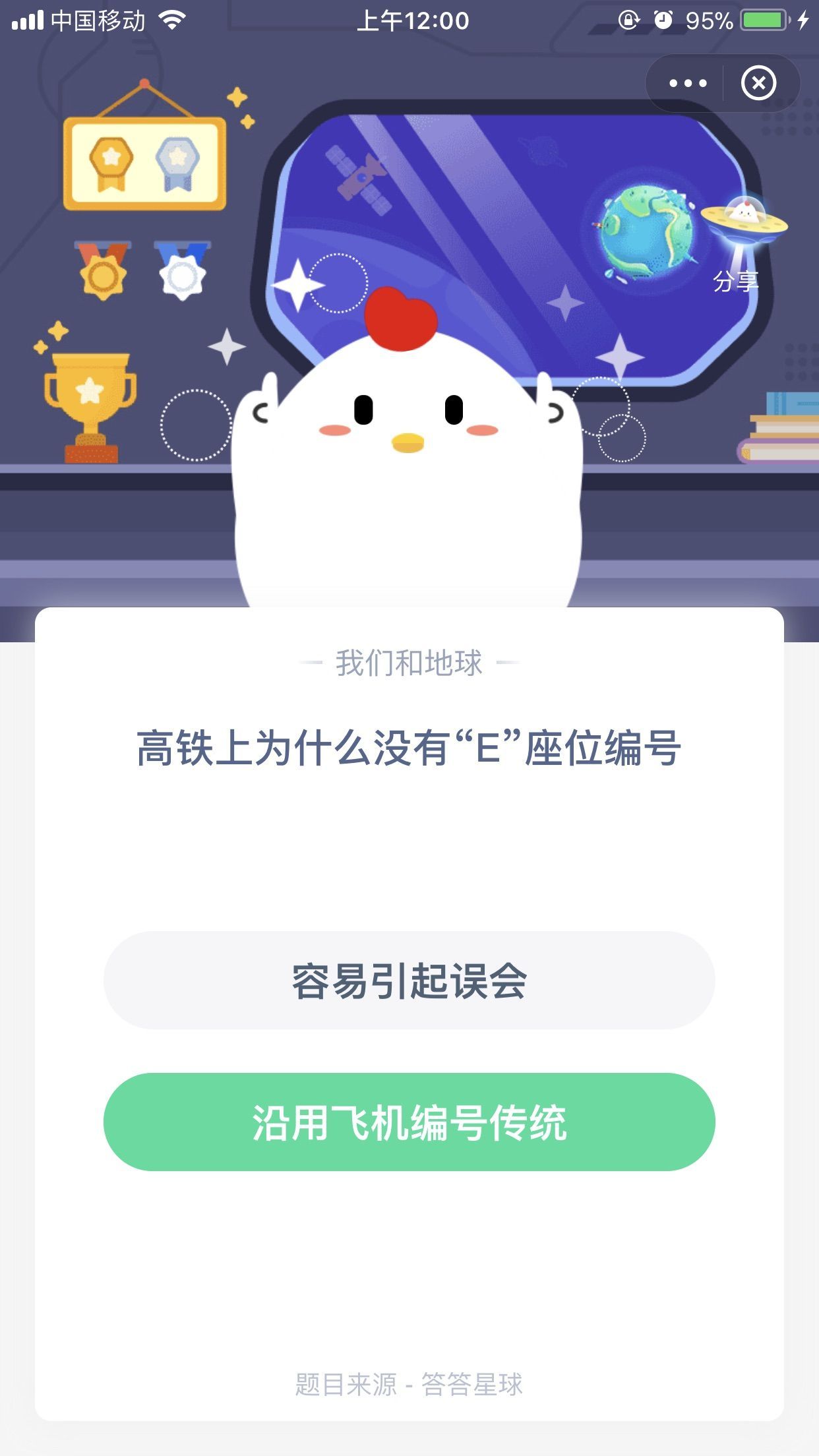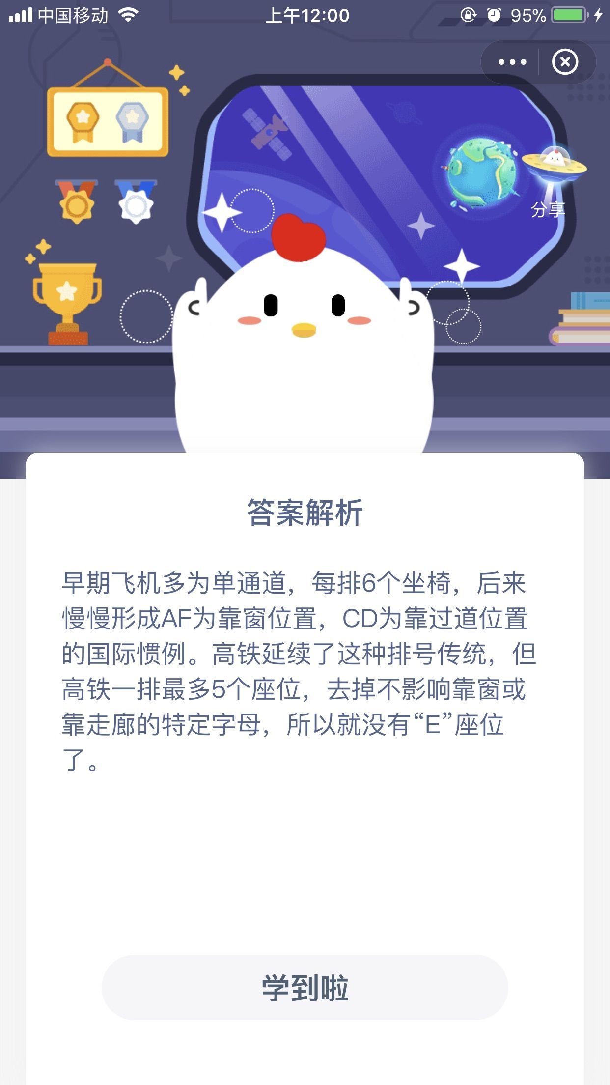 高铁为什么没有E座位编号 蚂蚁庄园12月30日今日答案
