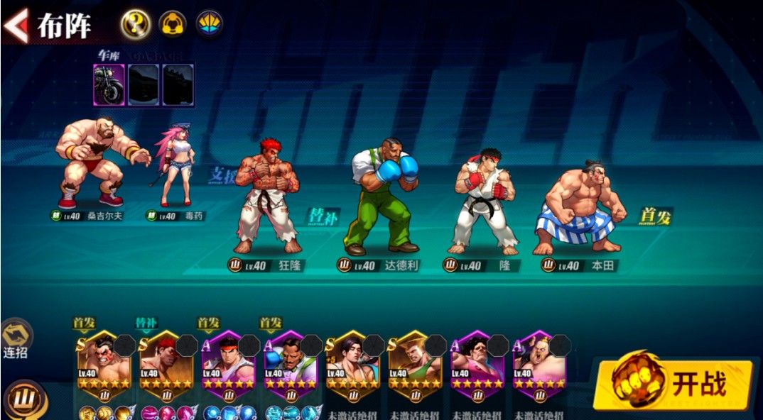 狂隆+本田是建队核心,可以给队友提供高额的免伤效果,其他两个伙伴可以考虑鲁佛斯,杰霸,阿顿,达德利,隆。