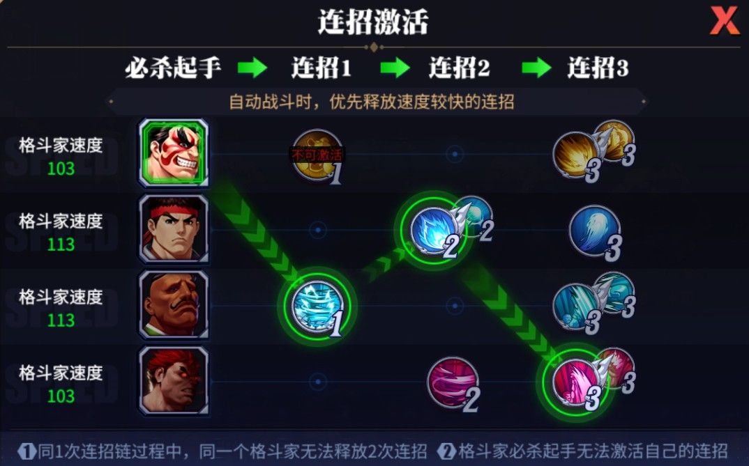 第二套:在狂隆超连招3的基础上,隆必杀起手(全队增伤并且可以触发隆的被动回蓝),达德利或者阿顿接连招1可以触发被动回蓝(或者本田接连招1可以稳定控制前排),隆接超连招2(再次触发被动回蓝),狂隆超连招3收尾。