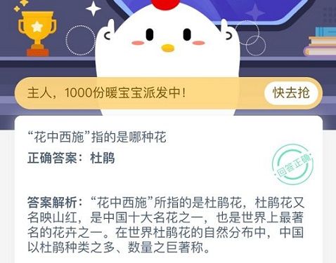 没想到平平无奇的杜鹃花竟然是花中西施,长见识了,而且还有这么多的功效和食用价值,学到了学到了!好了,今天蚂蚁庄园12.26日的答案及解析全部分享,同学们明天同一时间不见不散哦,有任何问题都可随时滴滴小编,等待你们来撩哦!