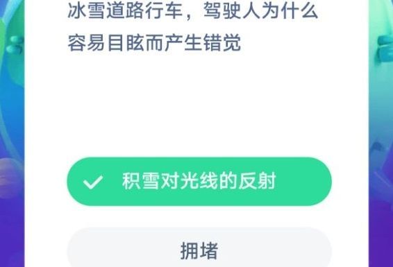 问题:冰雪道路行车,驾驶人为什么容易目眩而产生错觉?