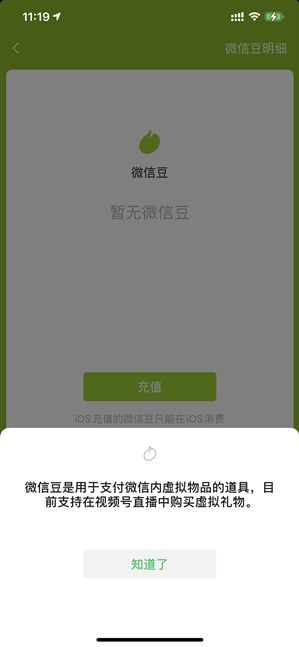 微信最新更新中添加了一项名为“微信豆”的功能,可用于购买微信内虚拟道具以及主播打赏等功能。