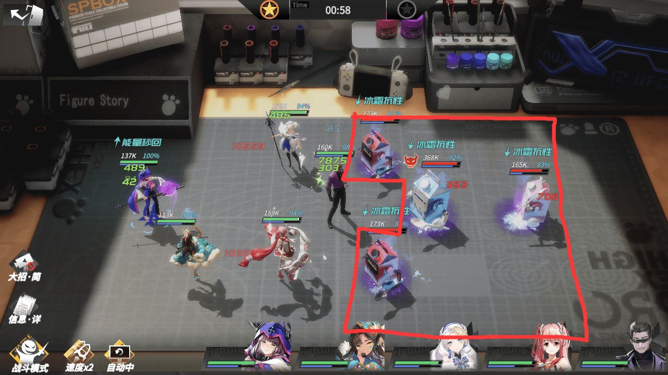 如他的标题一般,确实是简单,我们也简单的说一下好了!这一关可以选择的手办只有四位。所以,可以选择的阵容站位也很固定,多次测试后阵容还是天马系拉满,然后站位就按下图这样就可以了。
