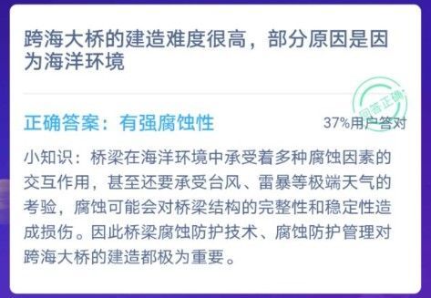 跨海大桥的建造难度很高其中的一部分原因是什么?这个题目还是一个非常冷门的题目。跨海大桥在我国还是非常常见的,沿海地区建造的还是非常多的。哪么在建造跨海大桥难在哪里呢?小编把今日的题目答案跟答案解析全部都奉上让你学到更多的东西。