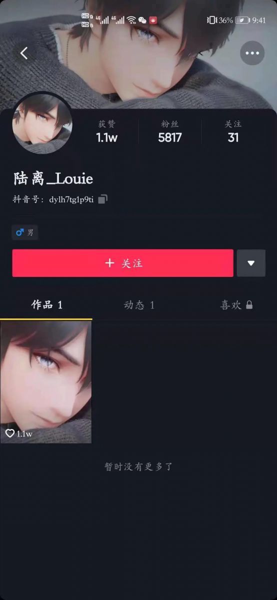 短短一天时间,陆离已经有了近10万粉丝,目前的唯一一个视频点击量也已经突破了百万,抖音号目前也已经注册并且开始运营。