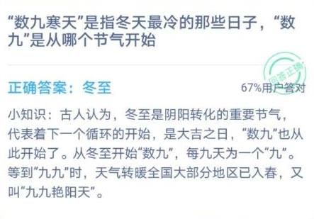 问题:“数九寒天”是指冬天最冷的那些日子,“数九”是从哪个节气开始