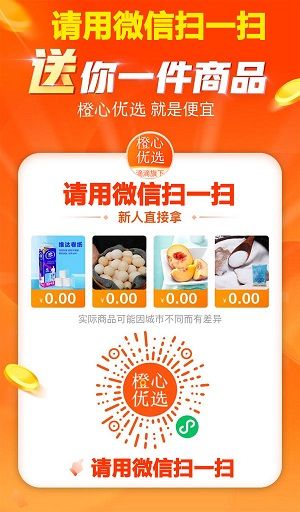 橙心优选也是为了招揽用户,推出福利活动:新人可免费下单一件商品,次日就能在附近自提点领到实物,不收一分钱。