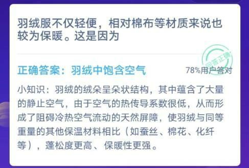 羽绒服轻便保暖是因为 羽绒服不仅轻便还保暖是因为蚂蚁庄园