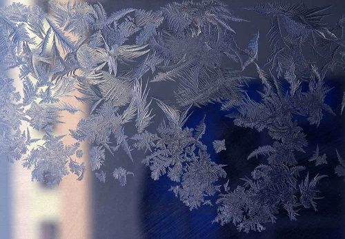 冬天室内、外的温差很大:室内比较暖和,而室外非常寒冷。当屋内空气中的水蒸气接触到冰冷的玻璃时,就会在玻璃上的尘埃周围结成冰晶。最初,这些冰晶也像雪花一样,呈六角形;然后逐渐扩大向四周发展,形成冰窗花。冰窗花的形状与室内的温度、湿度以及玻璃的光滑程度有关。如果室内湿度大,温度偏低,水汽结晶快,窗上的图案清晰,就容易形成树枝形状的冰窗花;反之则容易形成碎片状、扇状的;玻璃面粗糙或者尘埃多的地方,冰窗花的图案就会厚一些;玻璃面光滑,冰花图案就会薄一些。因此,就产生了千姿百态的冰花的形状。