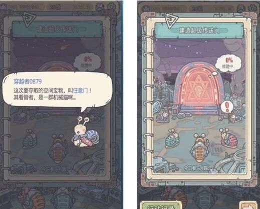 当俱乐部达到2级时,将开启建造超级传送门活动,蜗爷们通过击败异界生命体,夺取各式空间宝物后,建造超级传送门,便可等待神秘刺激的物种战争!