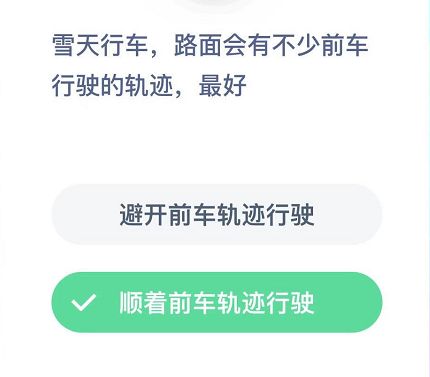 问题:雪天行车,路面会有不少前车行驶的轨迹,最好?