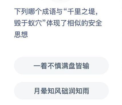 题目:下列哪个成语与“千里之堤,毁于蚁穴”体现了相似的安全思想?