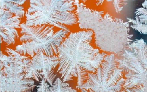 一面窗上的水汽或小水珠凝结会服从数学中的分形模型。即小雪花模型,大约是六角形的模样。仔细观察一下,很多复杂潇洒的窗花也大约都是一些小小雪花或六角形小鳞片组成。也是此原因,容易形成立体感和可触摸的的花纹。下面雪花状就是这个原因的典范