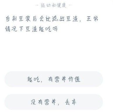蚂蚁庄园在家里自制做的豆浆,会剩下很多豆渣,那么这个豆渣还能不能吃?12月19日更新的这个问题,大家只需要多了解一下豆渣的营养价值即可,今天本站小编这就将豆渣究竟能不能吃的答案分享给大家。