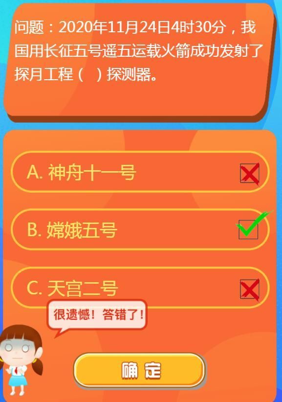 2020年11月24日4时30分,我国用长征五号遥五运载火箭成功发射了探月工程什么探测器 红领巾爱学习第一季13期第一题答案