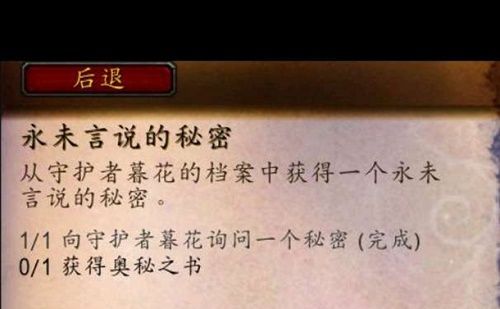 魔兽世界永未言说的秘密任务怎么做?魔兽世界奥秘之书在什么地方?永未言说的秘密任务其实是有两个任务的,第一个需要玩家向守护者暮花询问一个秘密,这个任务还是非常简单的,最难的就是获得奥秘之书了。这篇攻略会让你轻松完成这个任务。