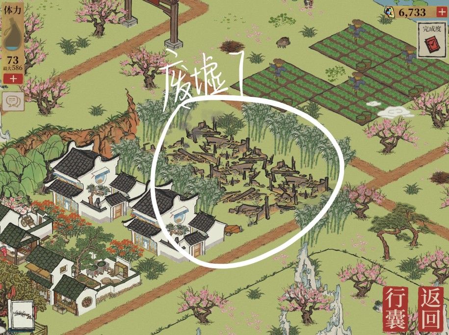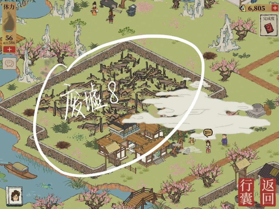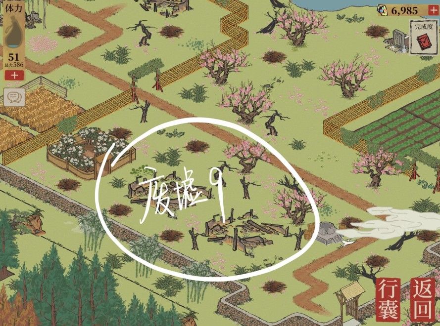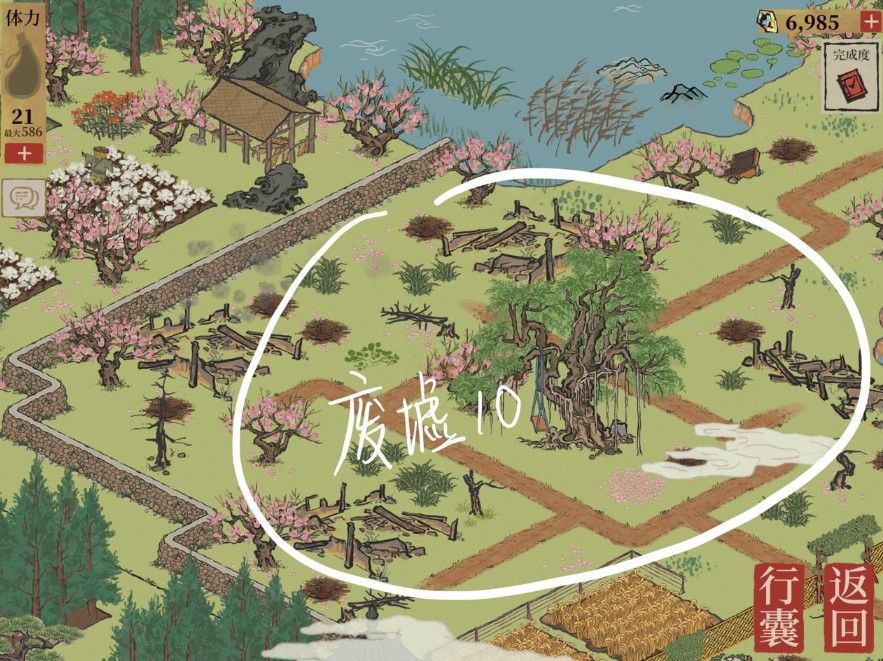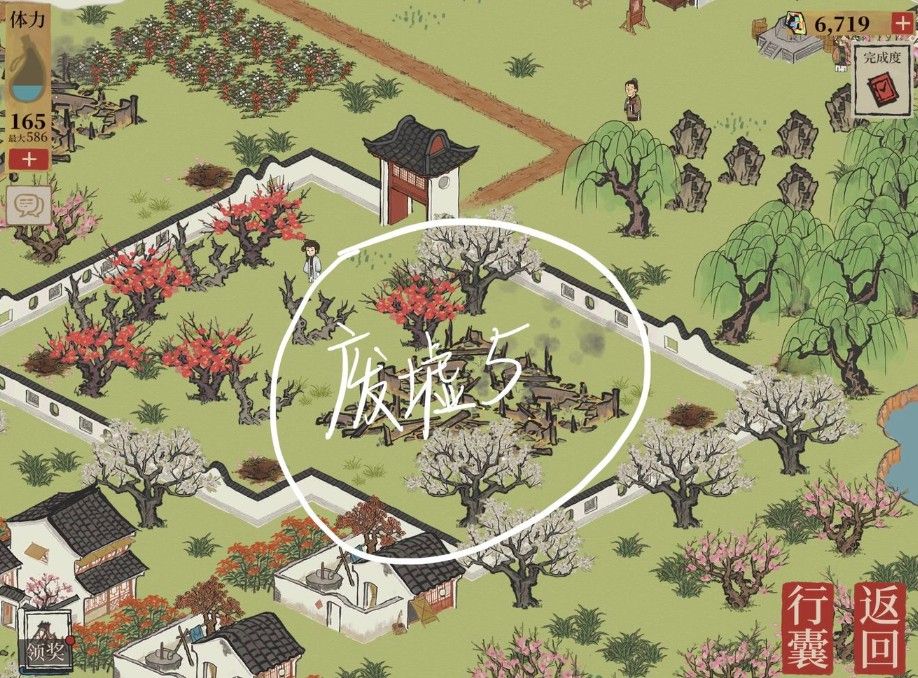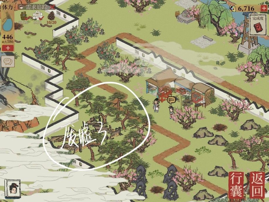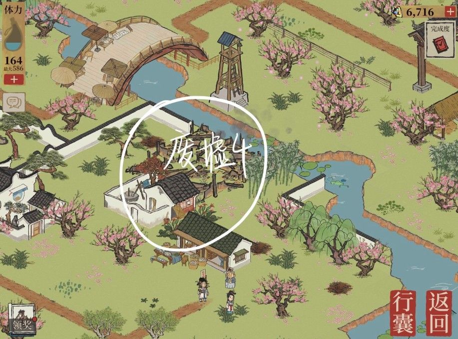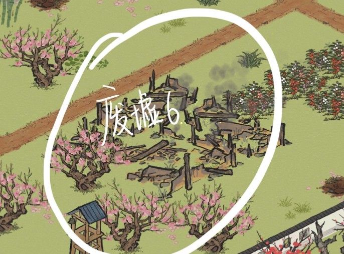 提醒:本章节有很多种桃树的地方,所以多囤一些桃花树苗和井水!!!种下的桃花成熟之后就可以收取桃花泪了。桃花坞废墟周围的桃树坑栽种完之后,桃花坞废墟会变身。变身后的建筑可以领取奖励。