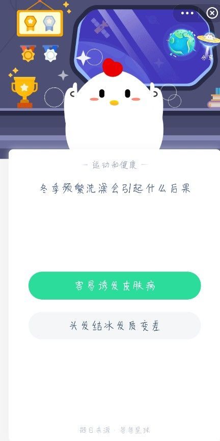小鸡庄园今天答案12.17 蚂蚁庄园冬季频繁洗澡答案