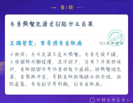 蚂蚁庄园冬季洗澡不能洗太久,而且还不能频繁的洗澡,原因是什么呢?12月17号的庄园小课堂就会有这样一个问题,那么是不是在冬天就不能天天洗澡了?关于这个问题,本站小编会在下面给大家带来更多专业性的分析。