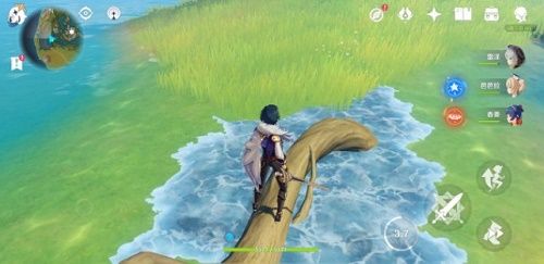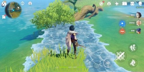 3、绿色部分:用凯亚技能冻住河水,注意要用冰描绘出河岸边线才能不碰到水元素。
