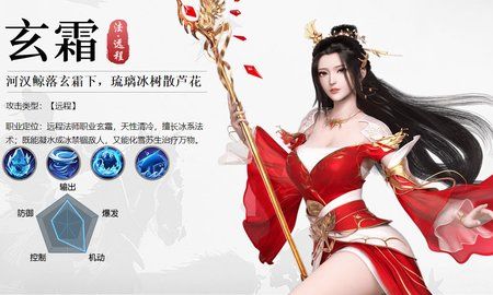 职业定位:远程法师职业玄霜,天性清冷,擅长冰系法术;既能凝水成冰禁锢敌人,又能化雪苏生治疗万物。