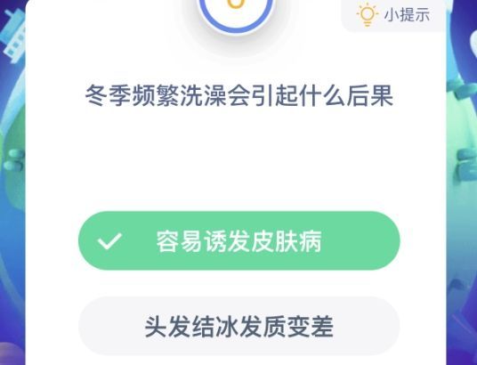 蚂蚁庄园今日答案冬季频繁洗澡的危害