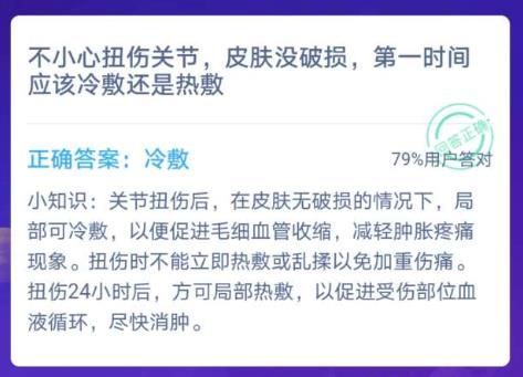 蚂蚁庄园12月13日扭伤关节问题选什么答案?在扭伤关节的时候,没有任何的伤痕,那么需要的是冷敷还是热敷?大家对于这个问题的处理方法并不太了解,所以本站小编会将正确的答案分享在下面的攻略中。