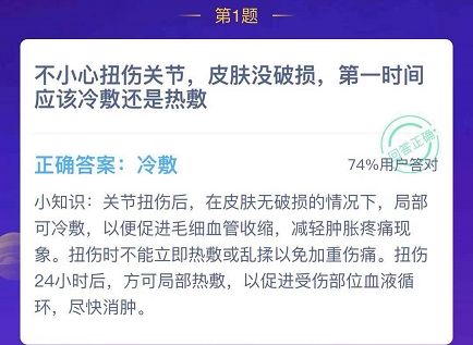 不小心扭伤关节,皮肤没有破损,第一时间应该冷敷还是热敷?蚂蚁庄园12月13日今日答案
