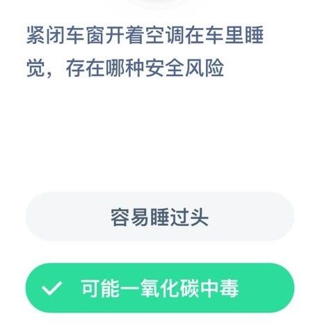 紧闭车窗开着空调在车里睡觉,存在哪种安全风险?蚂蚁庄园12月12日答案
