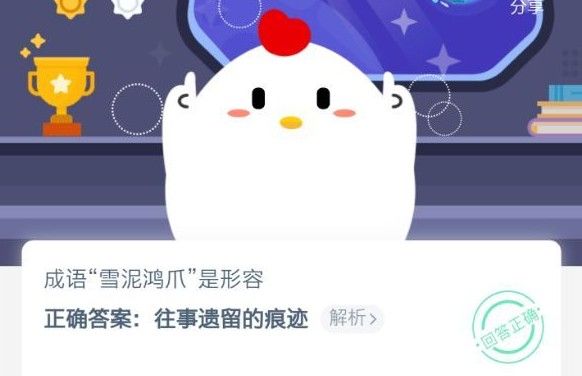 蚂蚁庄园雪泥鸿爪今日答案是什么,相信很多小伙伴都是第一次听到这个成语,小编也是,看到蚂蚁庄园上面出现这道题的时候,完全不知道是什么意思,下面就来给大家说说正确的答案和解析!