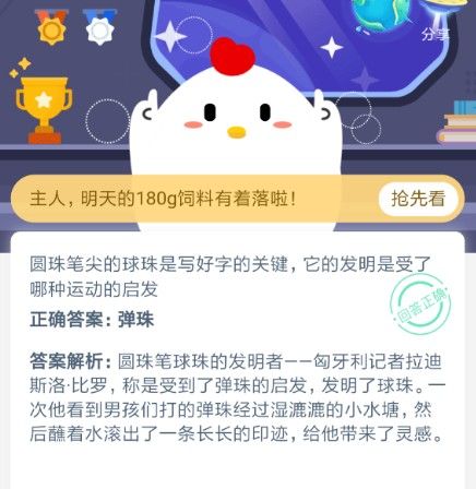 问题:圆珠笔尖的球珠是写好字的关键,它的发明是受了哪种运动的启发?