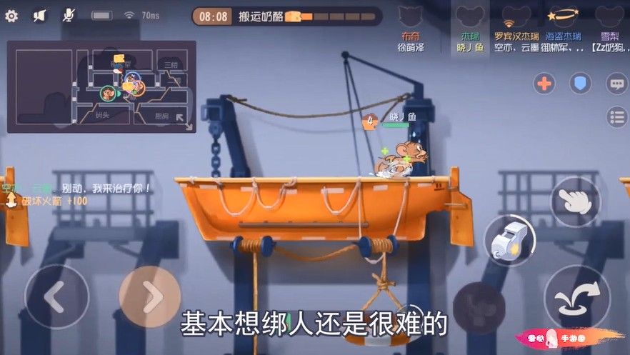 猫和老鼠手游这次还是3黑,心有点累,4黑的猫感觉现在就有点无解了,其实杰瑞有个低杆不知道大家注意到没,就是搬着奶酪学2级被动,其实移速是没变化的,只有中途奶酪扔掉,再搬才会触发技能效果的。第一个奶酪刚搬到洞口,队友就已经上火箭了,配合奶酪推到一半,一个上火箭两个倒地,感觉这波猫的等级应该和我们差不多了吧。