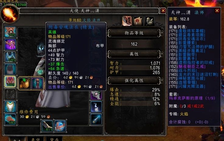 装等及格之后,就可以去排队打H本了,是不是非常轻松愉快呢?H本平均半小时就可以打一趟,运气只要不太差,一趟英雄本至少能分到一件171装等的装备,打个三五次就可以把凑装等的橙装模板替换下来了。