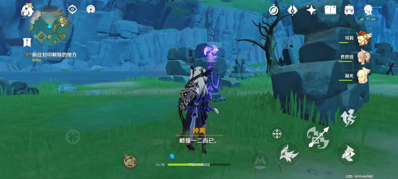 我用的阵容是凝光+芭芭拉+岩主+香菱,圣遗物很普通,配置也很普通,但是吃烹饪+操作也是能打的!