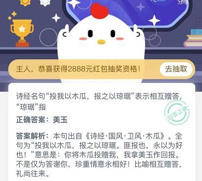 蚂蚁庄园琼琚指什么?诗经名句投我以木瓜报之以琼琚表示相互赠答,琼琚指?